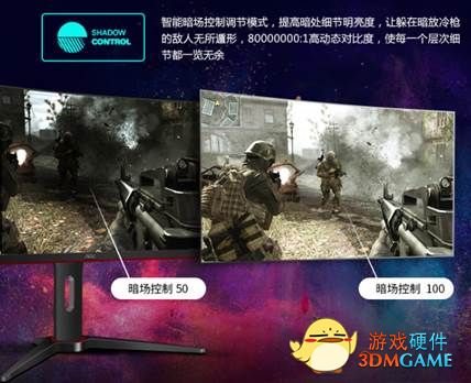 而为了给玩家更好的体验,G1电竞显示器提供0-20Level自定义色调调节,优化灰阶使画面饱和度跟层次表现更加深邃;通过智能暗场控制调节模式,还可以提高暗处细节明亮度,让躲在暗处放冷枪的敌人“无处遁形”。同时,依托3种预设模式和3种自定义模式能够帮助玩家适应不同类型游戏,各游戏模式可实现一键切换,助力玩家轻松进入状态。