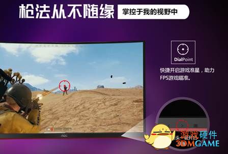 “杀敌全靠抖,爆头全靠扫”?很多人在玩FPS类游戏时,会怀疑自己的游戏是不是跟别人不一样,别人能在百米之外用二倍镜98K一枪爆头,而自己面对近在眼前的敌人却只能做“人体描边大师”。其实,不做“人体描边大师”也不难,AOC G1电竞显示器就给出了一个解决方案:点击屏幕面板下方的右箭头即可一键开启FPS辅助准星功能,对于游戏玩家来说如同开启了四倍镜。