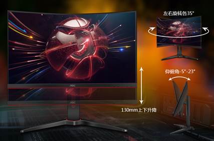 同时,为了缓解玩家因长时间游戏带来的颈椎疲累问题,AOC G1电竞显示器采用了人体工学旋转升降支架,可实现上下130mm升降、左右各35°旋转、仰俯角-5°-23°,让玩家以更轻松、更舒适的状态迎接“持久战”。