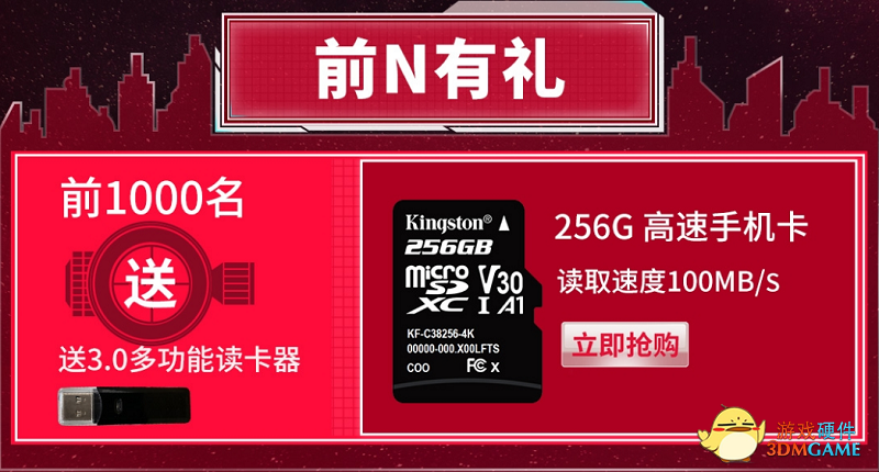 11月11日零点前需要把所有预售的优惠都提前加入购物车,而零点时则需要去购买金士顿256G存储卡,其读取速度达到100MB/s,满足UHS-I U3及V30和A1新规格,前1000名赠送3.0多功能读卡器