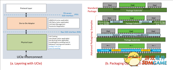 UCIe 1.0标准定义了芯片间I/O物理层、芯片间协议、软件堆栈等,并利用了PCIe、CXL两种成熟的高速互连标准。