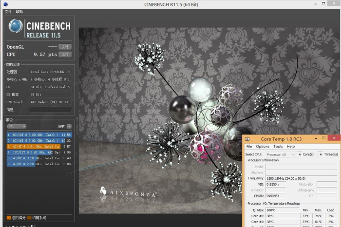 HyperX FURY DDR4 2400 16GB×2 配合6600K超频Cinebench R11.5跑分