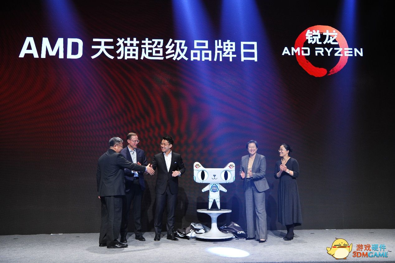 AMD总裁兼首席执行官苏姿丰博士,AMD高级副总裁、计算与显卡事业部总经理Jim Anderson先生,AMD全球副总裁、大中华区总裁潘晓明先生,天猫电器家装事业组总裁印井先生,天猫电器家装事业组3C数码总经理竹照女士联手启动了“AMD天猫超级品牌日”活动