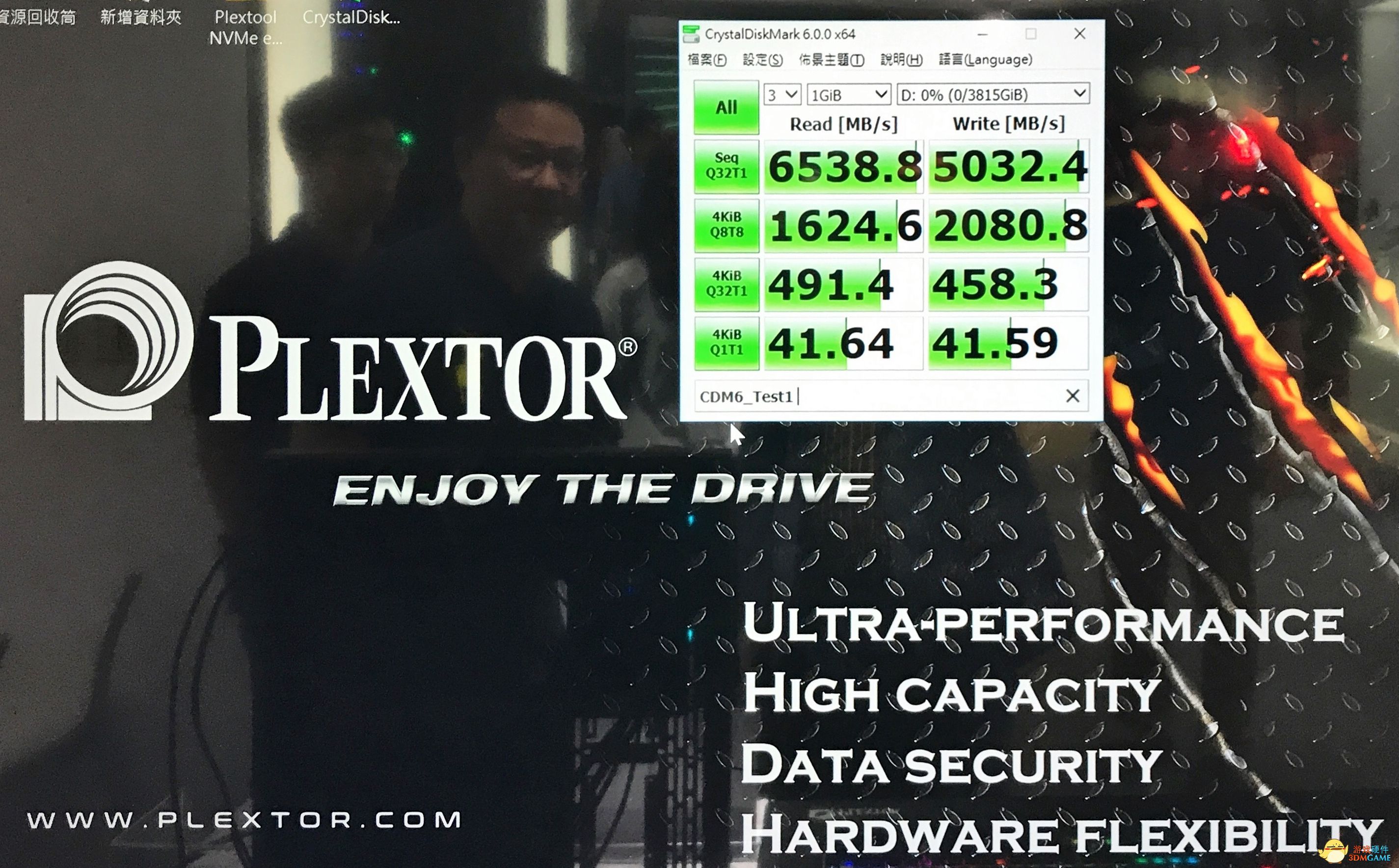 测试时,浦科特使用四块M9Pe 1TB组成RAID 0阵列,持续读写速度达到了6.5GB/s、3.0GB/s,现场演示速度简直癫狂!