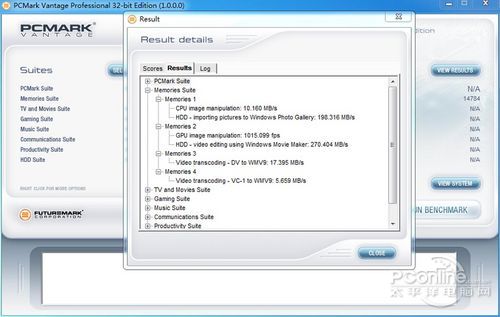 PCMark Vantage是Futuremark推出的基准测试软件,可以较好地反映出PC实际的整机性能。无论什么样的PC,都能在PCMark Vantage里通过得分了解自己电脑的各组件性能强弱。我们采用其中的内存测试子项来测试内存性能。