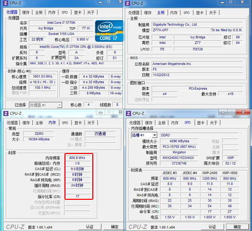 我们初次尝试,选择了目前主流的1600MHz,时序设定为常见的9-9-9-24,并进行测试。