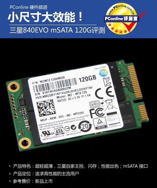 小尺寸大效能 三星840EVO mSATA 120G评测