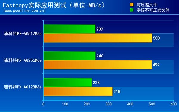 测试小结:平常的生活工作中,用户使用较为频繁的就是复制粘贴了,Fastcopy测试中,三盘写入速度都差不多,但256G和512G版本的可压缩文件复制速度达到500MB/s,和理论测试成绩非常接近。