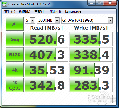 测试小结:PCMARK7测试中,浦科特M6S 128G/256G SSD测试成绩都比较理想,特别是M6S 256G已经超过了5400分,达到了顶级SSD的跑分水平。