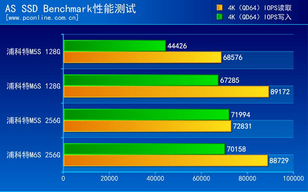测试小结:在AS SSD Benchmark测试中,浦科特M6S 128G/256G SSD分别获得1031分和1057分,双双破千分大关。M6S持续读取成绩远超M5S,而4k读取出现同样的情况且都达到了90k IOPS的水平。不过M6S 256G的随机写入IOPS要比M5S 256G少那么一点点。