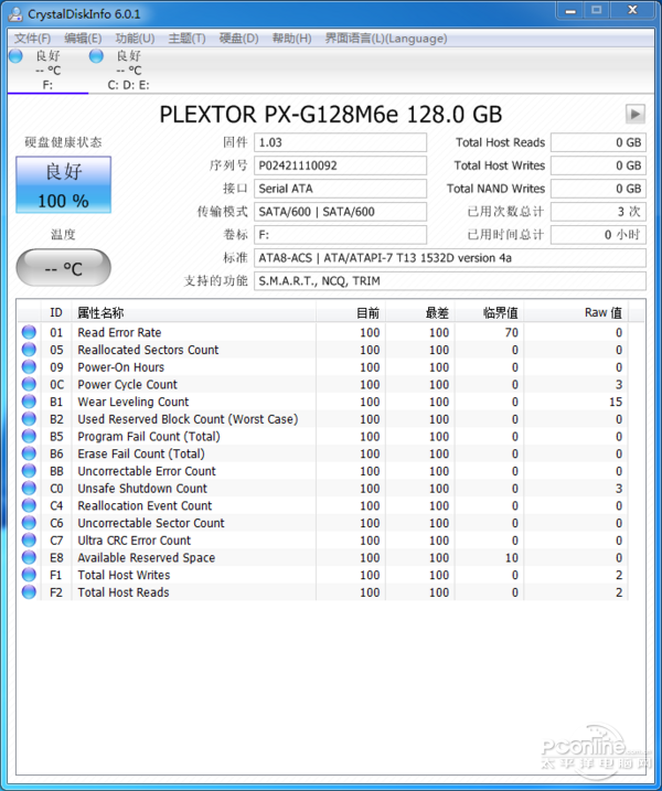 浦科特PX-G128M6e 128G SSD Crystal Disk Info信息