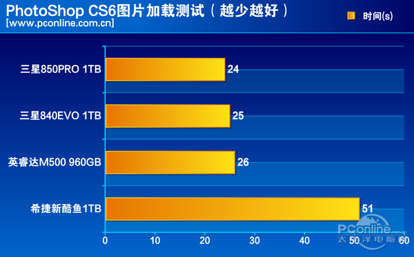 Photoshop是最著名的图像处理软件之一,集图像编辑修改、图像制作、广告创意、图像输入与输出于一体,深受广大平面设计人员和普通用户的喜爱。测试方法是加载61张高分分辨率的大图,共393MB,记录所用时间。
