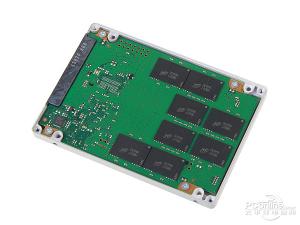 PCB背面相对简洁,焊有另外8颗闪存芯片。