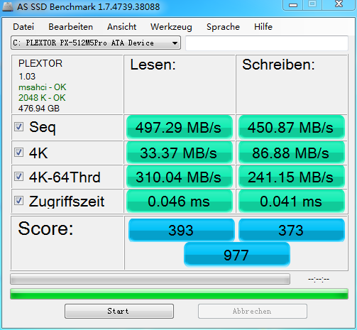 AS SSD Benchmark是一款专门的固态硬盘基准性能测试,它的测试内容很全面,包括了4个方面的测试(顺序读写、4K随机读写、64线程4K读写、寻道时间)。在测试中,测试文件的大小为1G Byte。通过AS SSD Benchmark的测试,可以很全面的了解一款SSD的性能。