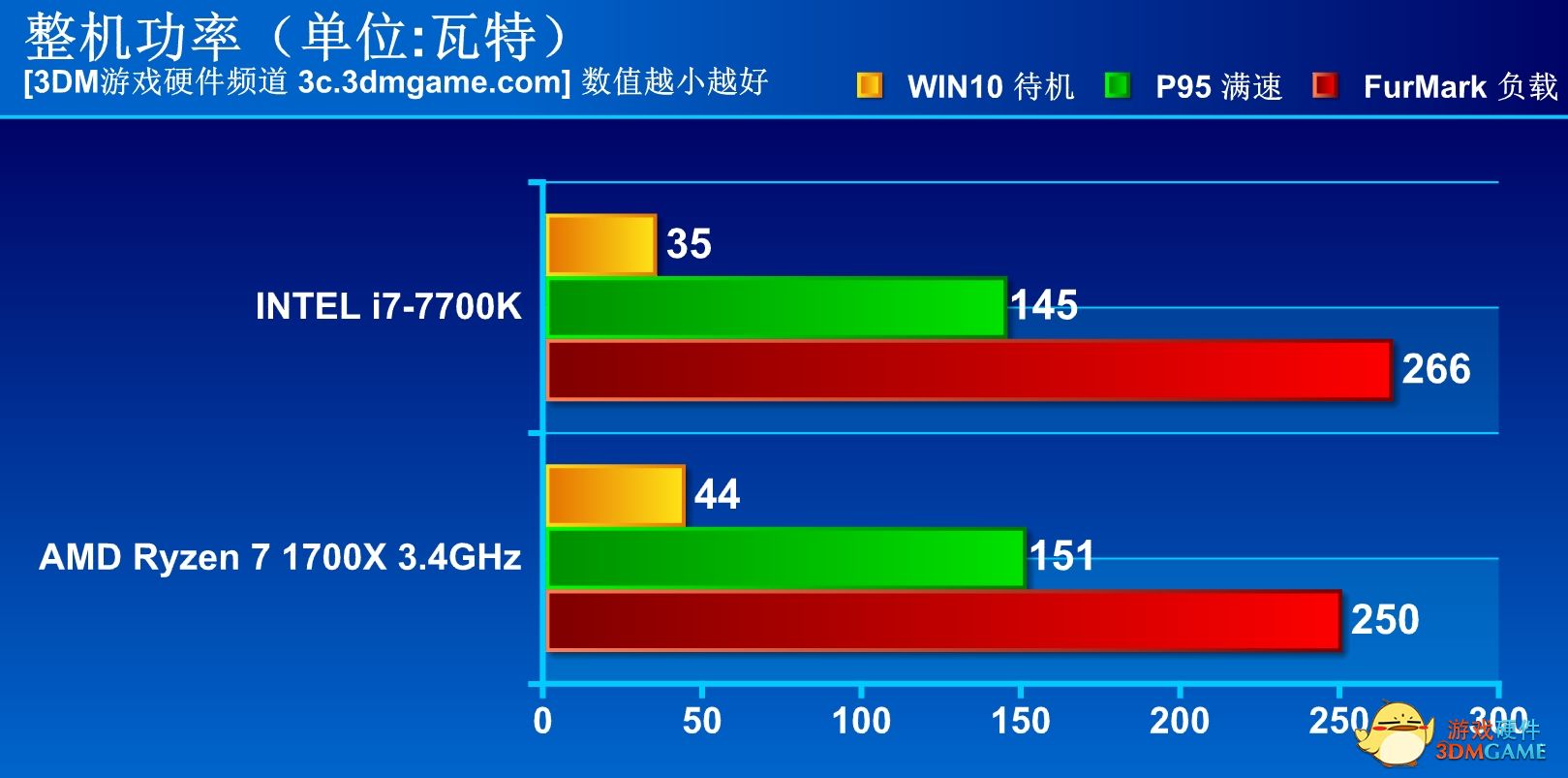 首先在待机情况下和CPU满载情况下,核心数多的CPU的功耗肯定是比核心数少的CPU要高一些的,但是让郭少万万没想到的是,核心数多一半和多核跑分将近高一半的锐龙 AMD Ryzen 7 1700X处理器在满载的时候竟然只比7700K高了5W!
