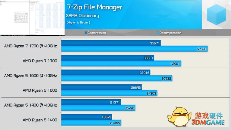 办公和理论性能部分,基于多线程优化的程序毫无悬念是多核心更有优势。例如,做图渲染的Cinebench R15、办公的Excel 2016、文件压缩的7-Zip和视频压缩的Adobe Premiere Pro CC,八核心R7 1700的优势相当明显。
