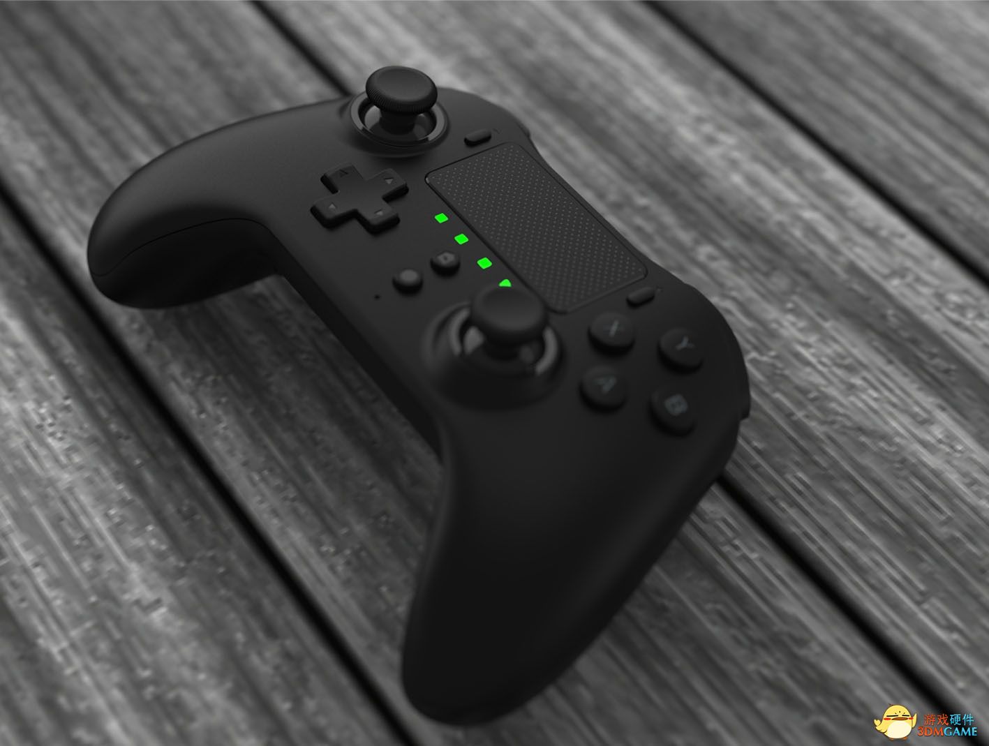 手柄肩部以及底部,均具有按钮,方便使用食指以及无名指进行操控。手柄正前方留有有线接口,预计可以进行充电,兼容无线模式。