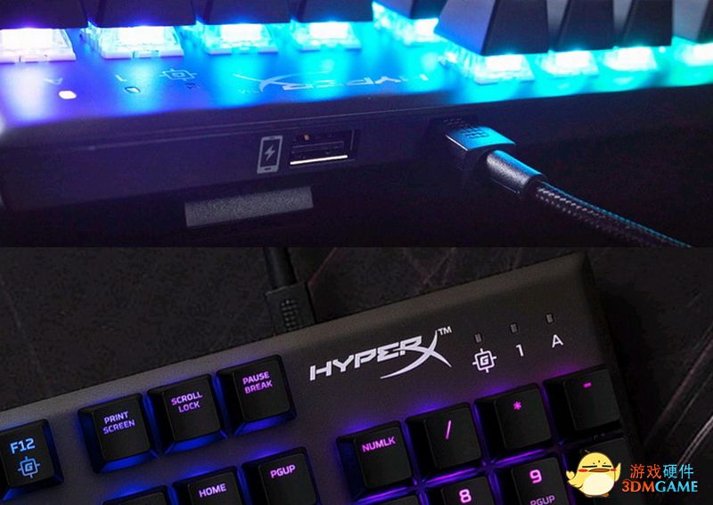 键盘、鼠标、耳机,这基本上是去网吧激战必带的三件套。对于键盘而言,本身体积就不小,还有烦人的线材要缠,现在简单了。HyperX Alloy FPS RGB电竞机械键盘提供了可拆卸的USB数据线,并且在键盘顶端还设计了一个USB充电扩展端口,方便为手机充电,而无需再额外连接主机的USB接口。