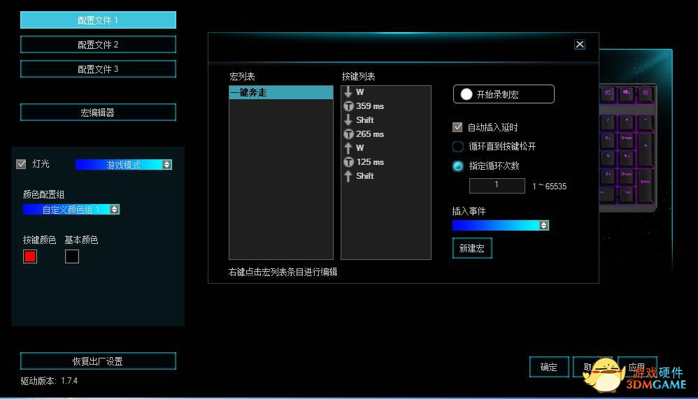 宏怎么设置去完成奔走的动作,需要将默认的W键(向前)+Shift键(奔跑)同时按下,这样就能触发奔走的动作。宏定义可以让你高速闪现,在游戏中来回穿梭,给予敌人致命的伤害。下面就为大家讲解如何通过雷柏V700RGB合金版的宏定义一键玩转奔走。