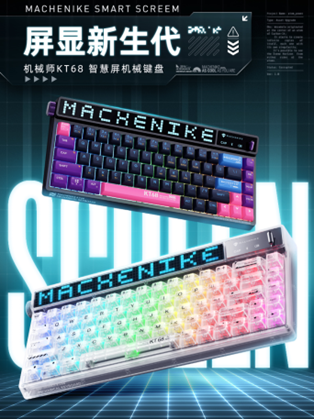 今年5月机械师发布了KT68轻复古类打字机键盘新品,凭借轻复古造型的超高颜值与超赞手感,倍受好评。机械师延续一贯的高颜值路线,重磅推出带有325颗LED点阵组成的KT68智慧屏版,正式开启机械键盘屏显时代。